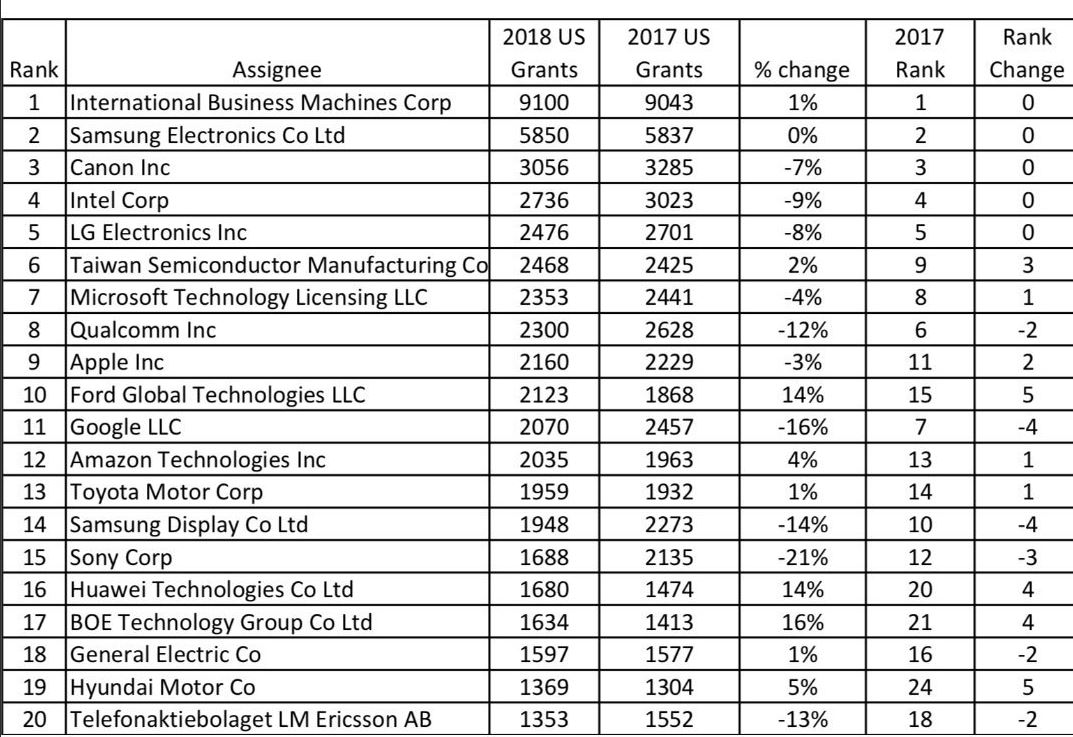 Aşağıdaki tabloda solda yer alan firma isimleri ile hemen sağında bulunan (Üstelik sadece) ABD patent tescil sayıları arasındaki ilişki tam da anlatmaya çalıştığımız şeydir.